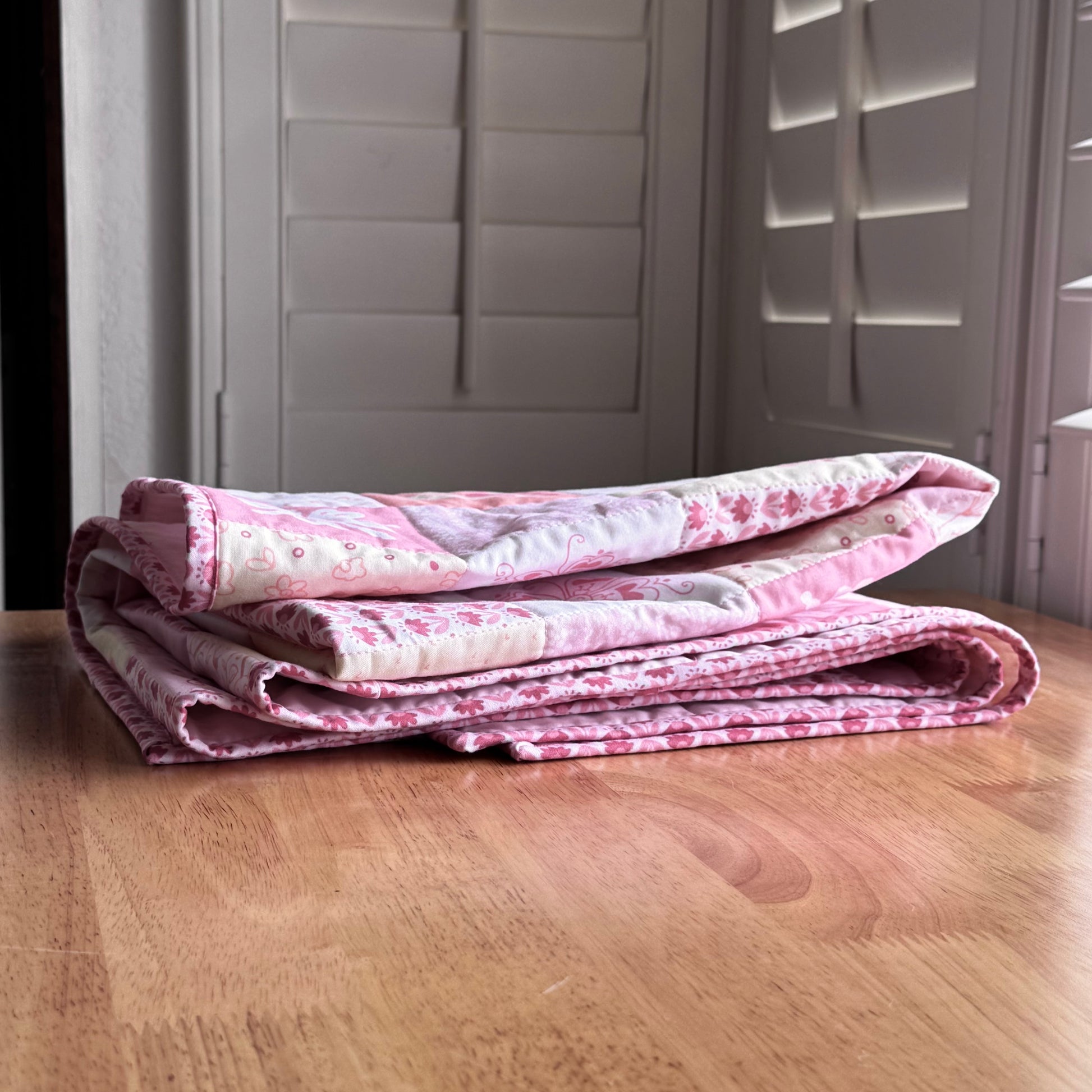 Baby Girl Quilt Pink Yellow Orange Flowers Bird Butterfly
