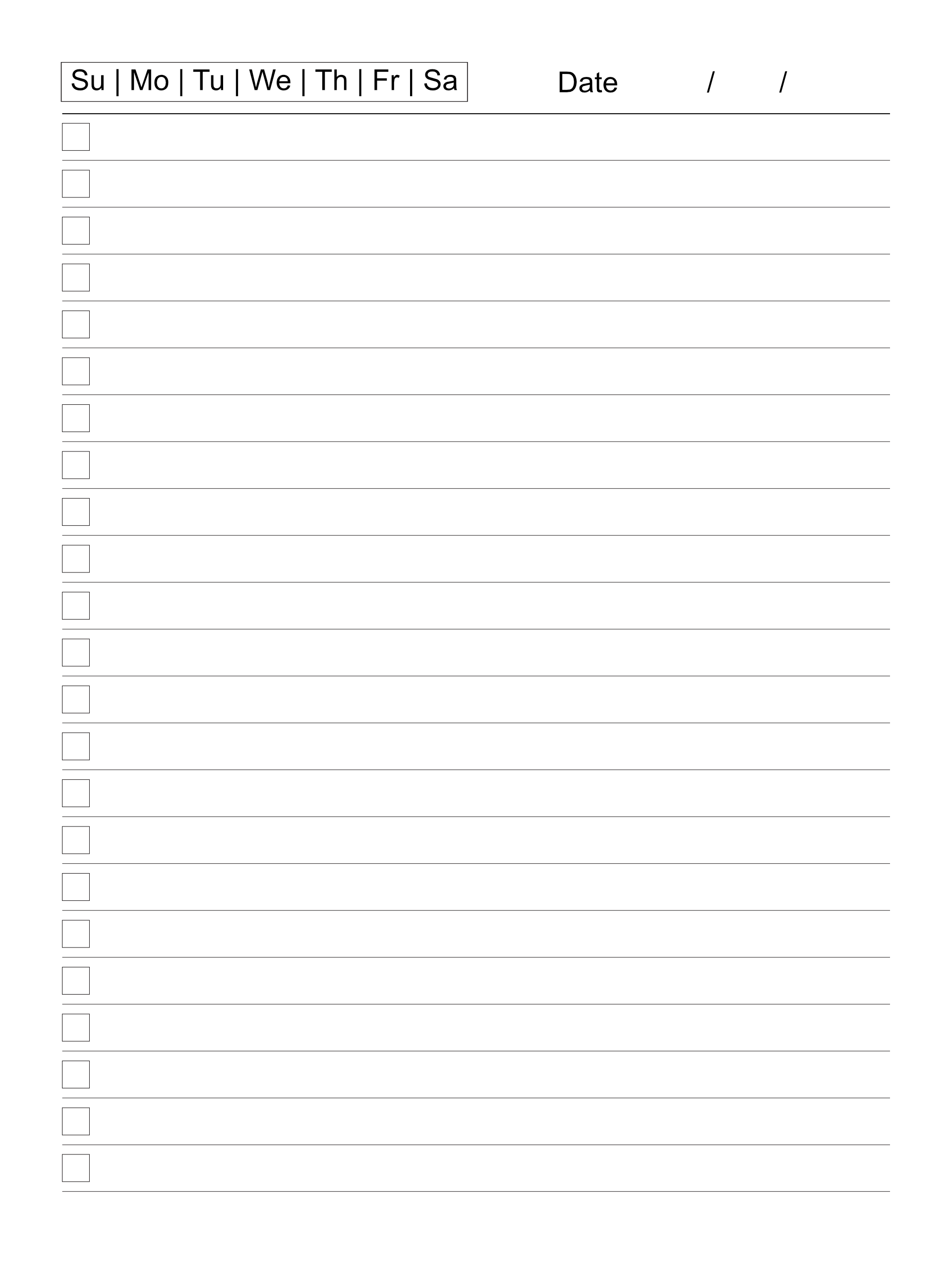 To Do lined full page checkboxes and date/day of the week. Supernote X2 Template for Nomad or Manta.